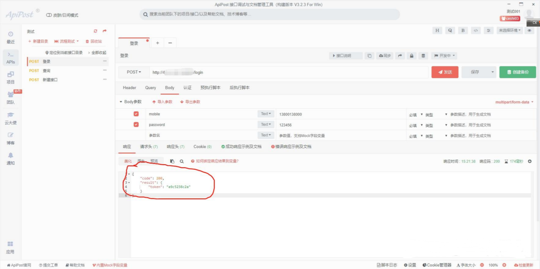 然后点击发送验证接口,查看返回的响应,接口测试就完成了。
