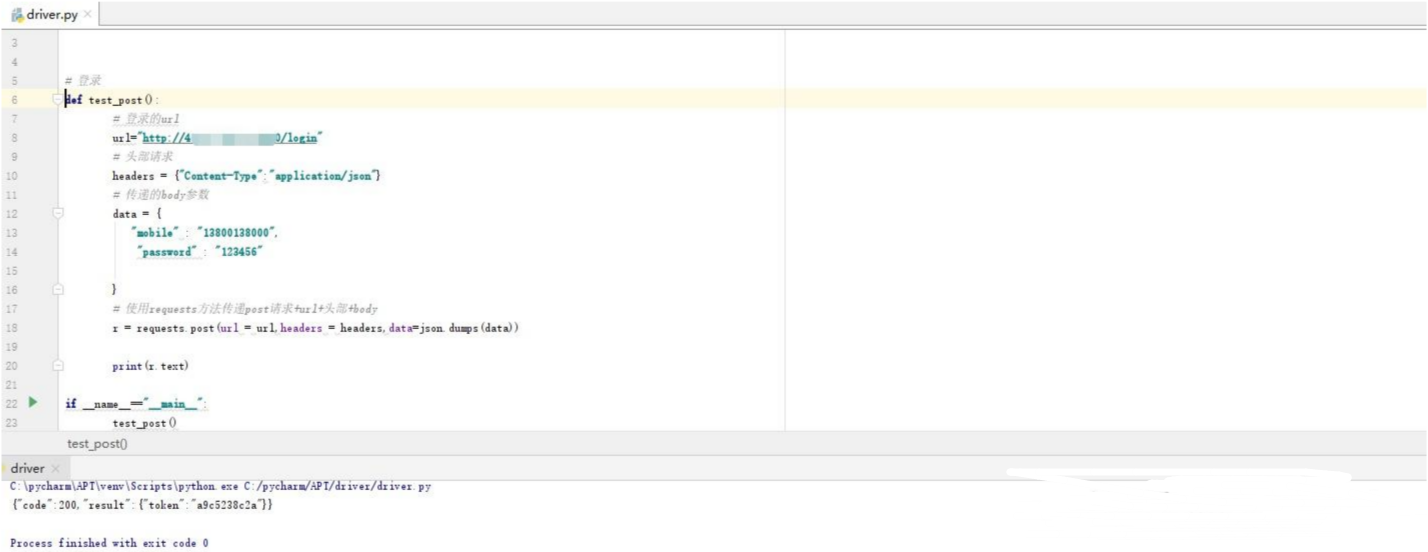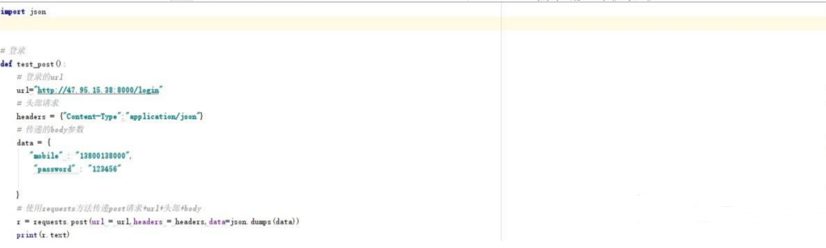 定义一个函数名称叫test_post,这是实现的是post请求的登录方法