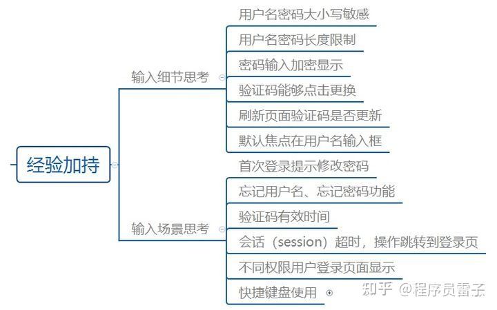 相信大多数测试工程师都能够想到上述基本的测试点,然在实际工作中面对的项目不同,设计测试用例的颗粒度也有不同的要求,如果针对上述登录的模块,更深入一层考虑呢?此时需要对产品的熟悉程度及测试经验的加持,而且这些点的设计是不断学习、熟悉项目、测试积累中得到的。
