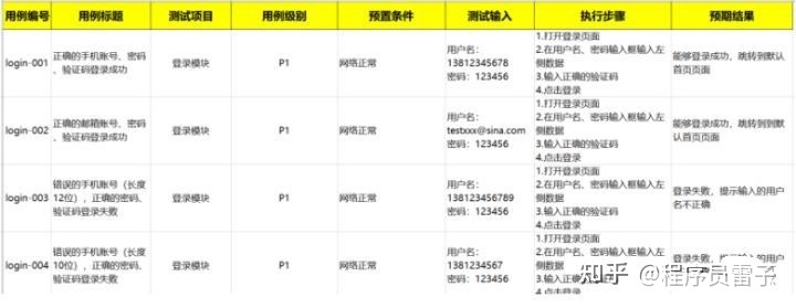 4、用例的模板:描述编写用例核心内容,一般项目都有自己的设计用例的模板,常见测试用例模板可参照如下: