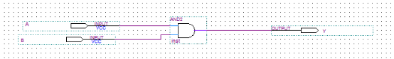 当添加完二输入与门后,也就意味着芯片内部的设计完成。现在需要将内部设计与外部相连接。芯片与外界相连接靠的是IO。