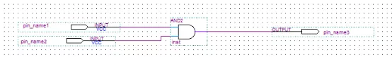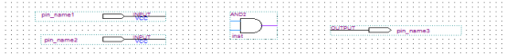此时默认两个输入的管脚的名字为pin_name1和pin_name2。在设计时,二输入与门我们将其输入命名为一个为A,一个为B,输出为Y。