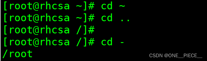[root@rhcsa ~]# 指 用户名 @ 主机名 当前所在目录路径(工作目录) ~ 当前目录的家目录