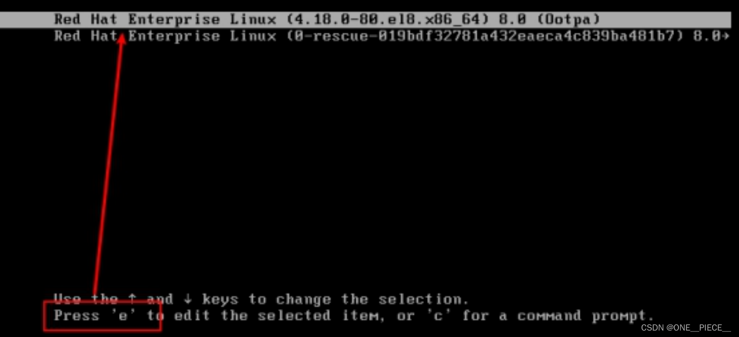 第一步 重启系统并编辑内核参数 点击字符键 按'e'键
