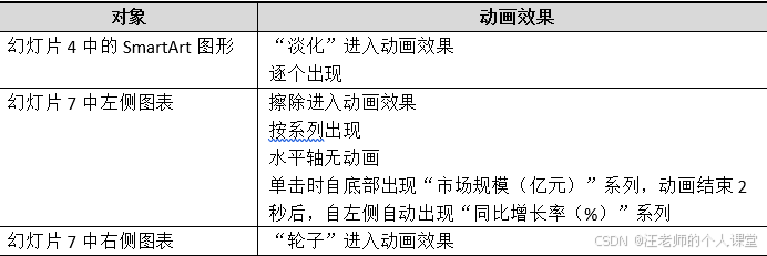 10.设置幻灯片切换,要求为第2节、第3节和第4节每一节应用一种单独的切换效果。11.按照下列要求为幻灯片中的对象添加动画:
