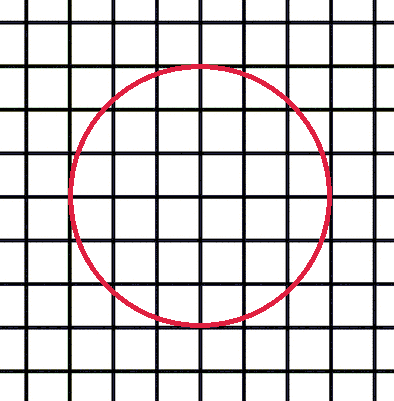 我们以某个小方格的一个顶点为圆心画一个半径为 50000的圆。 你能计算出这个圆里有多少个完整的小方格吗?