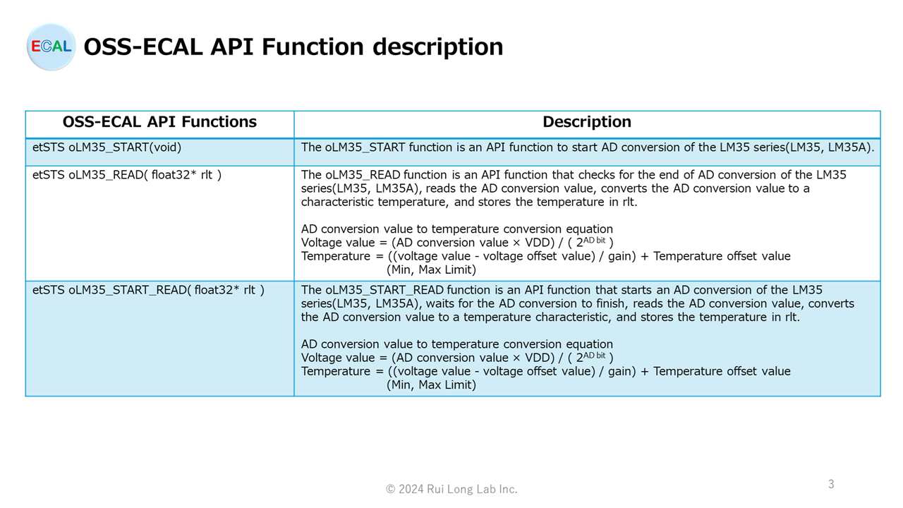 LM35 Serise(LM35, LM35A) 的概述以及 LM35 Serise 用OSS-ECAL的提供情况。LM35 Serise 是 Texas Instruments 公司生产的温度传感器(-55°C 至 +150°C)。