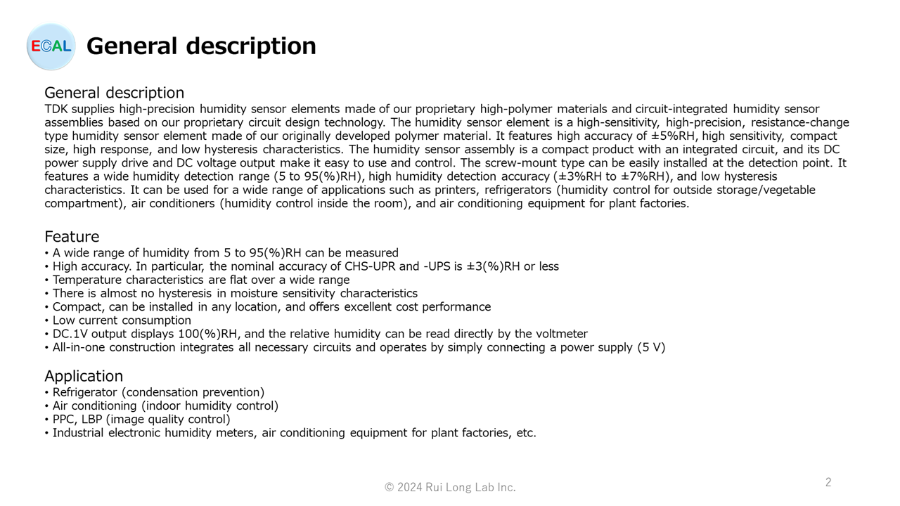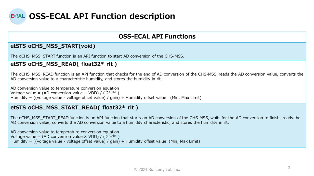 CHS-MSS的概述以及CHS-MSS 用OSS-ECAL的提供情况。CHS-MSS 是 TDK 公司生产的湿度传感器IC(湿度范围为 20%RH 至 85%RH)。 中文说明请参阅网站。 OSS-ECAL API 功能描述: 支持 HAL: OSS-ECAL: 是电子元件抽象层开源软件的缩写。Open-Source Software for Electronic Components Abstraction Layer 我将为您提供对您有用的电子元件的OSS,请随意使用。 此致,敬礼。