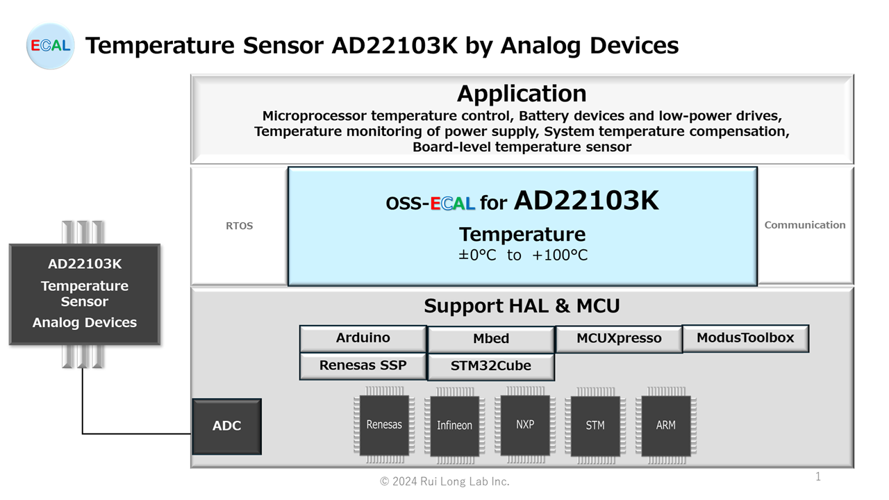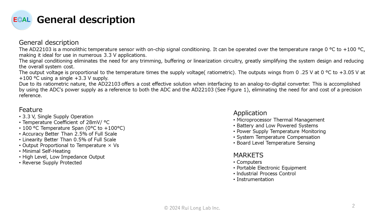 AD22103K的概述以及AD22103K用OSS-ECAL的提供情况。AD22103K是Analog Devices公司生产的温度传感器IC(温度范围为 ±0 ℃ 至 +100 ℃)。