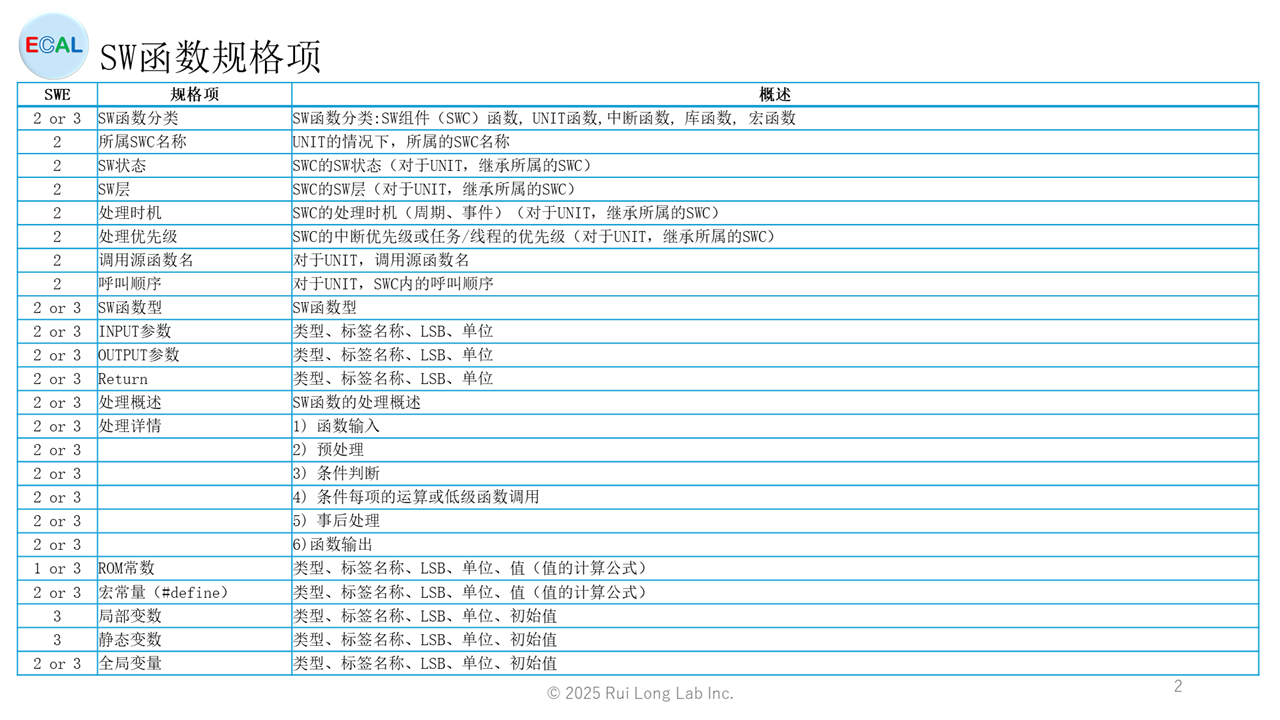 SW函数规格说明书是描述SW开发中各函数设计内容的文档。该规格说明书明确记载了函数的目的、输入输出参数、前提条件、处理内容、返回值、异常处理等信息,为实现者提供准确编码的指导。