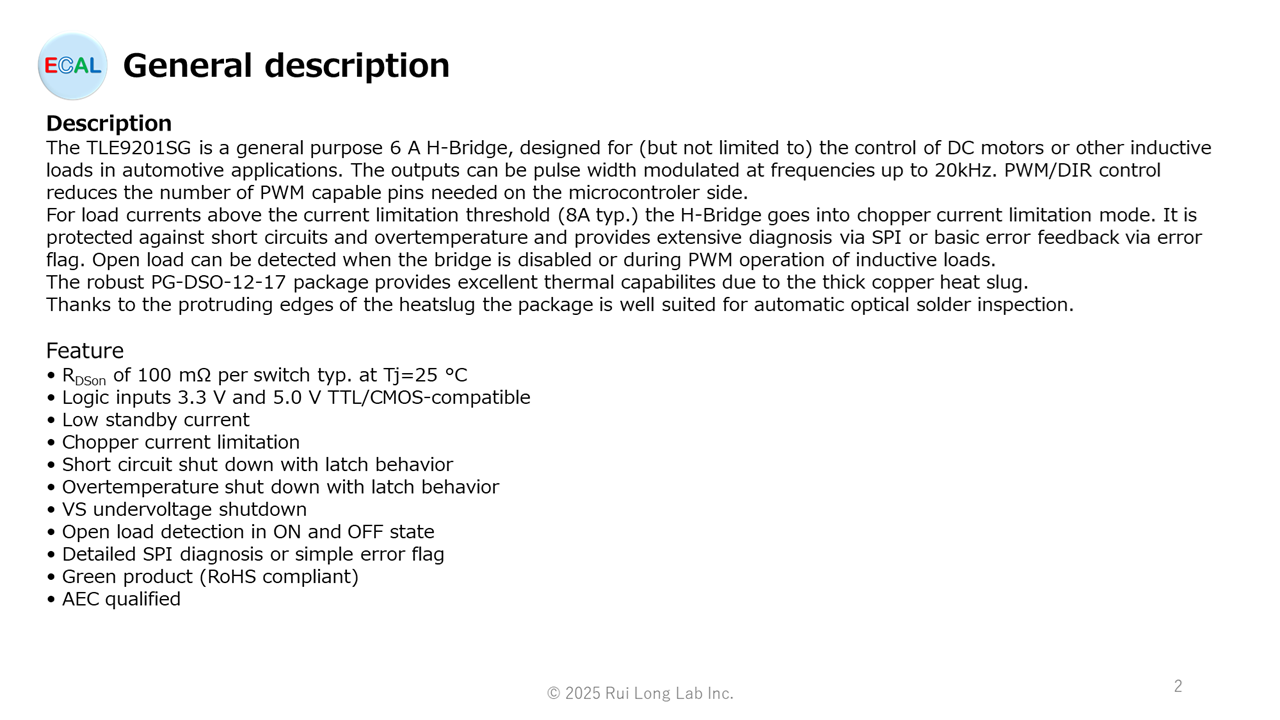 TLE9201SG的概述以及TLE9201SG用OSS-ECAL的提供情况。TLE9201SG是英飞凌(Infineon)生产的BDC电机用MOTIX™全桥IC。