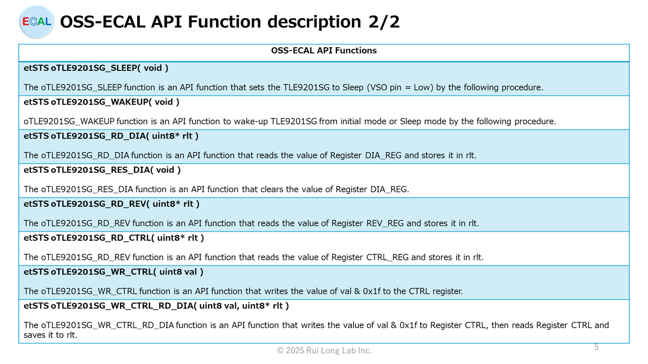 OSS-ECAL API 功能描述: