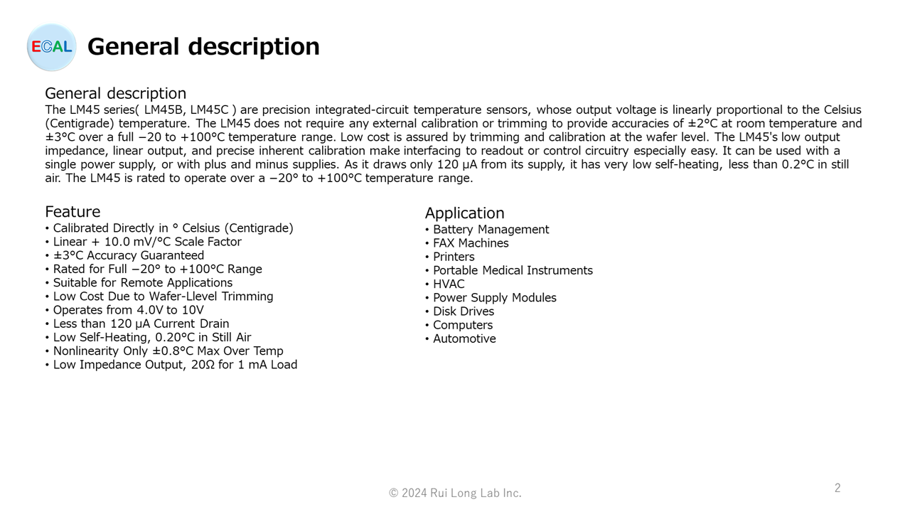 LM45 series(LM45B, LM45C) 的概述以及 LM45 series 用OSS-ECAL的提供情况。LM45 series 是 Texas Instruments 公司生产的温度传感器IC(温度范围为 -20 ℃ 至 +100 ℃)。