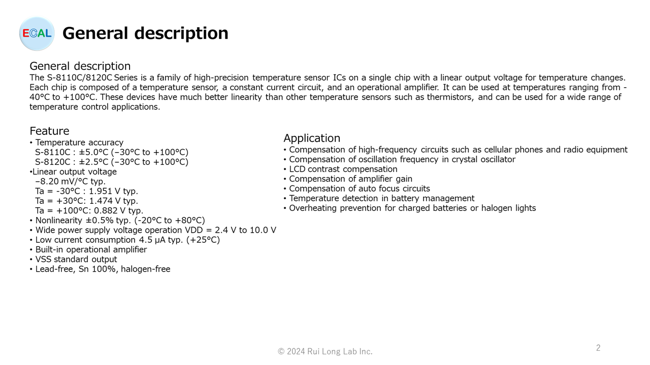 S-8110C series (S-8110C, S-8120C) 的概述以及S-8110C series 用OSS-ECAL的提供情况。S-8110C series 是 ABLIC 公司生产的温度传感器IC(温度范围为 -30 ℃ 至 +100 ℃)。