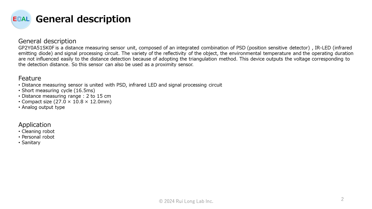 GP2Y0A51SK0F 的概述以及GP2Y0A51SK0F 用OSS-ECAL的提供情况。GP2Y0A51SK0F是 Sharp 公司生产的距离测量传感器 IC(20.0 至 150.0mm)。