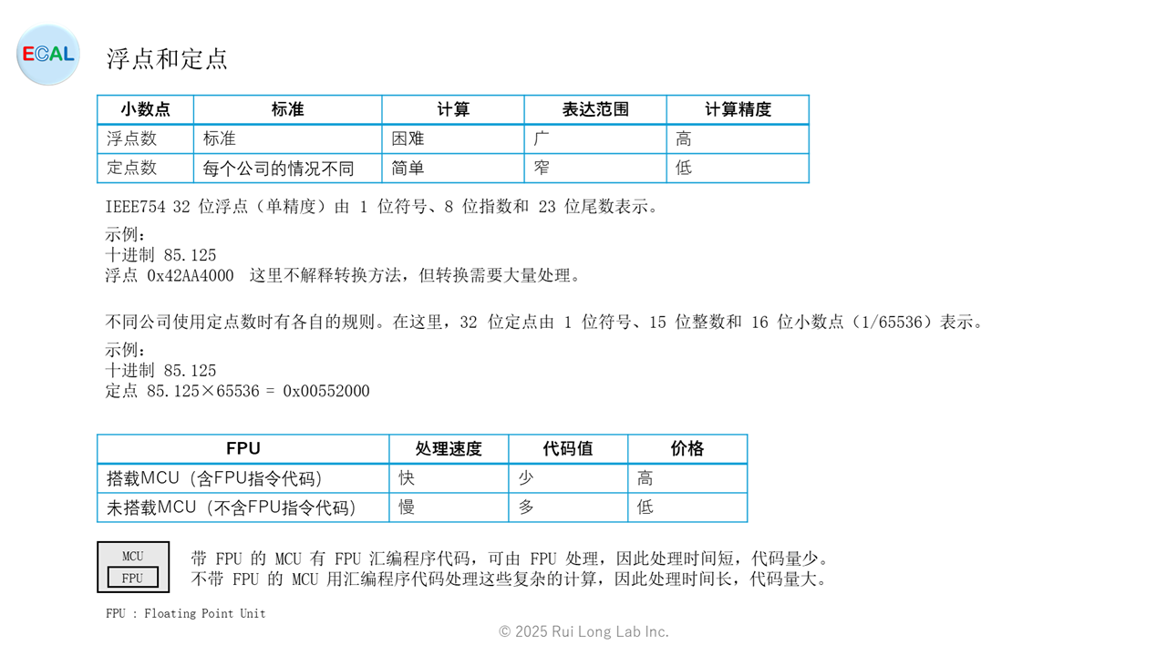 FPU是搭载于MCU核心的单元。当程序中声明浮点类型(float)时,搭载FPU的MCU与未搭载FPU的MCU存在以下差异。