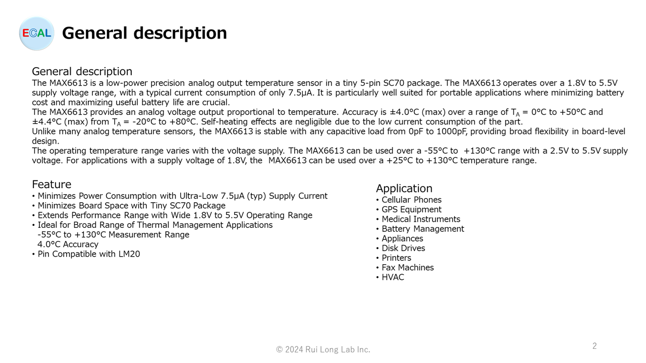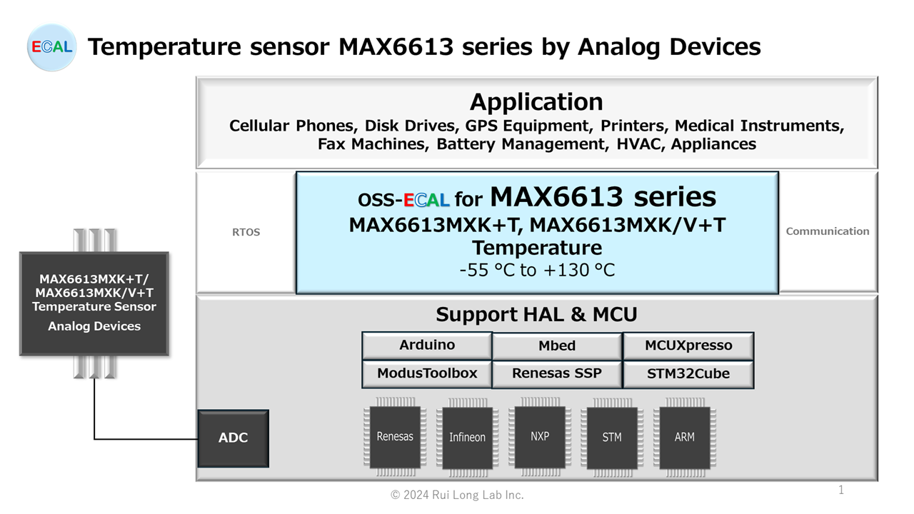 MAX6613 series (MAX6613MXK+T, MAX6613MXK/V+T)的概述以及 MAX6613 series 用OSS-ECAL的提供情况。MAX6613 series 是 Analog Devices 公司生产的温度传感器IC(温度范围为 -55 ℃ 至 +130 ℃)。