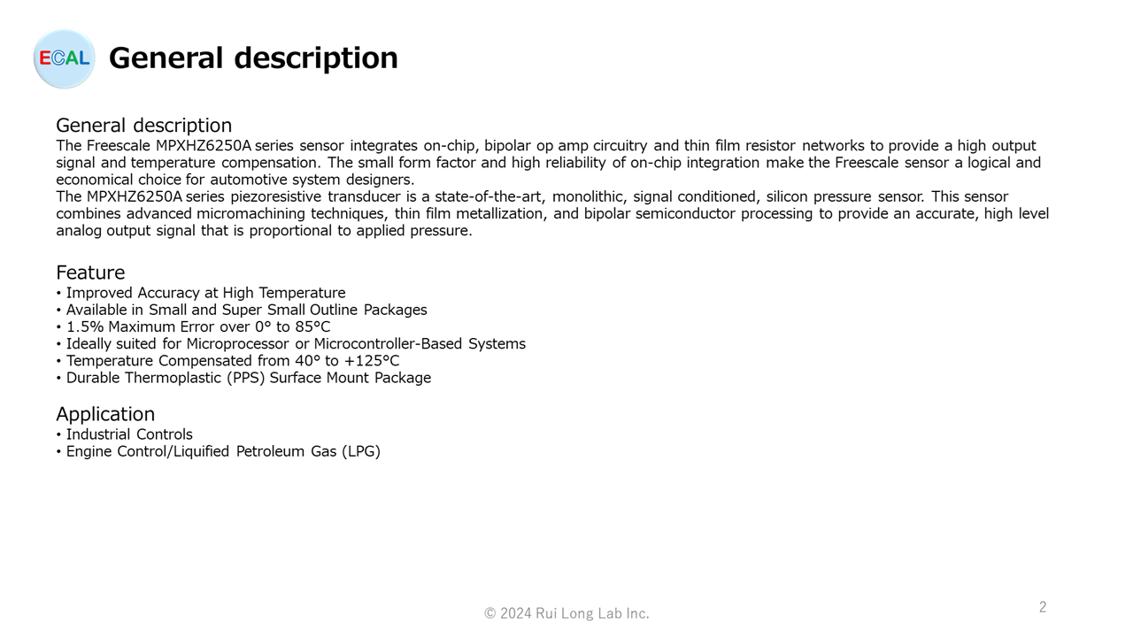 MPXHZ6250A 的概述以及 MPXHZ6250A 用OSS-ECAL的提供情况。MPXHZ6250A 是 NXP Semiconductors 公司生产的压力传感器IC( 20kPa 至 250kPa)。