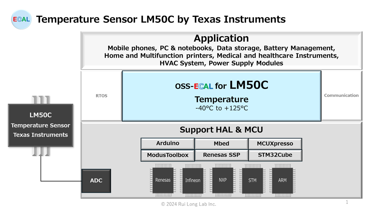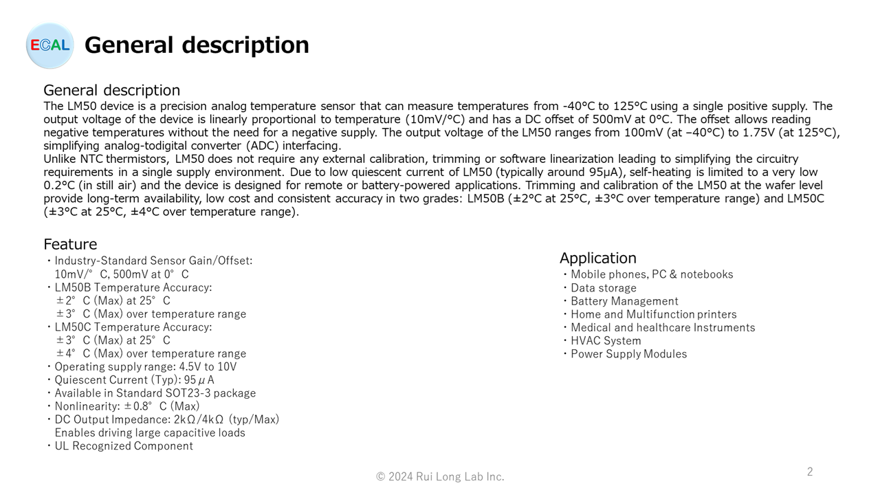 LM50C 的概述以及 LM50C 用OSS-ECAL的提供情况。LM50C 是 Texas Instruments 公司生产的温度传感器IC(温度范围为 -40 ℃ 至 +125 ℃)。