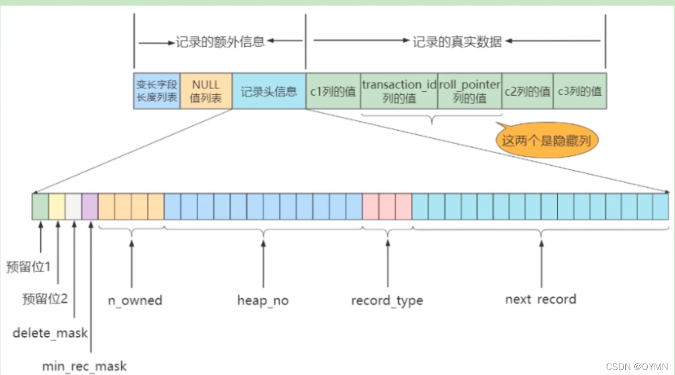 记录的真实数据除了我们自定义的列数据外,还有三个隐藏列: