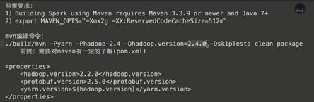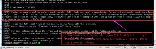 然后先编译:mvn -Pyarn -Dhadoop.version=2.6.0-cdh5.7.0 -Phive -Phive-thriftserver -DskipTests clean package