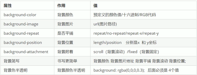 background-repeat : repeat(默认)/no-repeat/repeat-x(沿x轴)/repeat-y(沿轴)