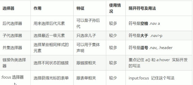 类选择器在修改样式中用的最多, id选择器一般用于页面唯一性的元素上,经常和JavaScript搭配使用