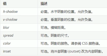 box-shadow: h-shadow v-shadow blur(虚实) spread(范围) color(一般有透明度) inset ;