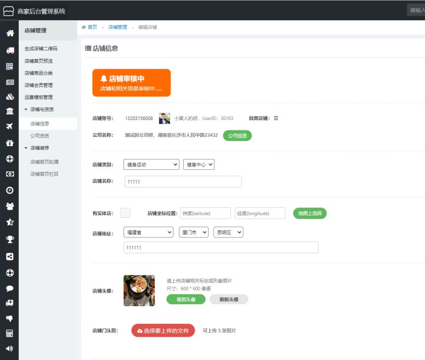 在入驻申请页面中,提交相关的企业或个体户信息,商家信息,店铺信息,上传营业执照等等,提交成功后,商城系统就会自动为用户开通店铺,用户就可以使用用户账号(手机号)登录到商家后台系统中。但商家的店铺还是处于审核状态中,需要入驻商家进一步完善商家信息和店铺信息,以便更快的通过平台审核。 如下图: