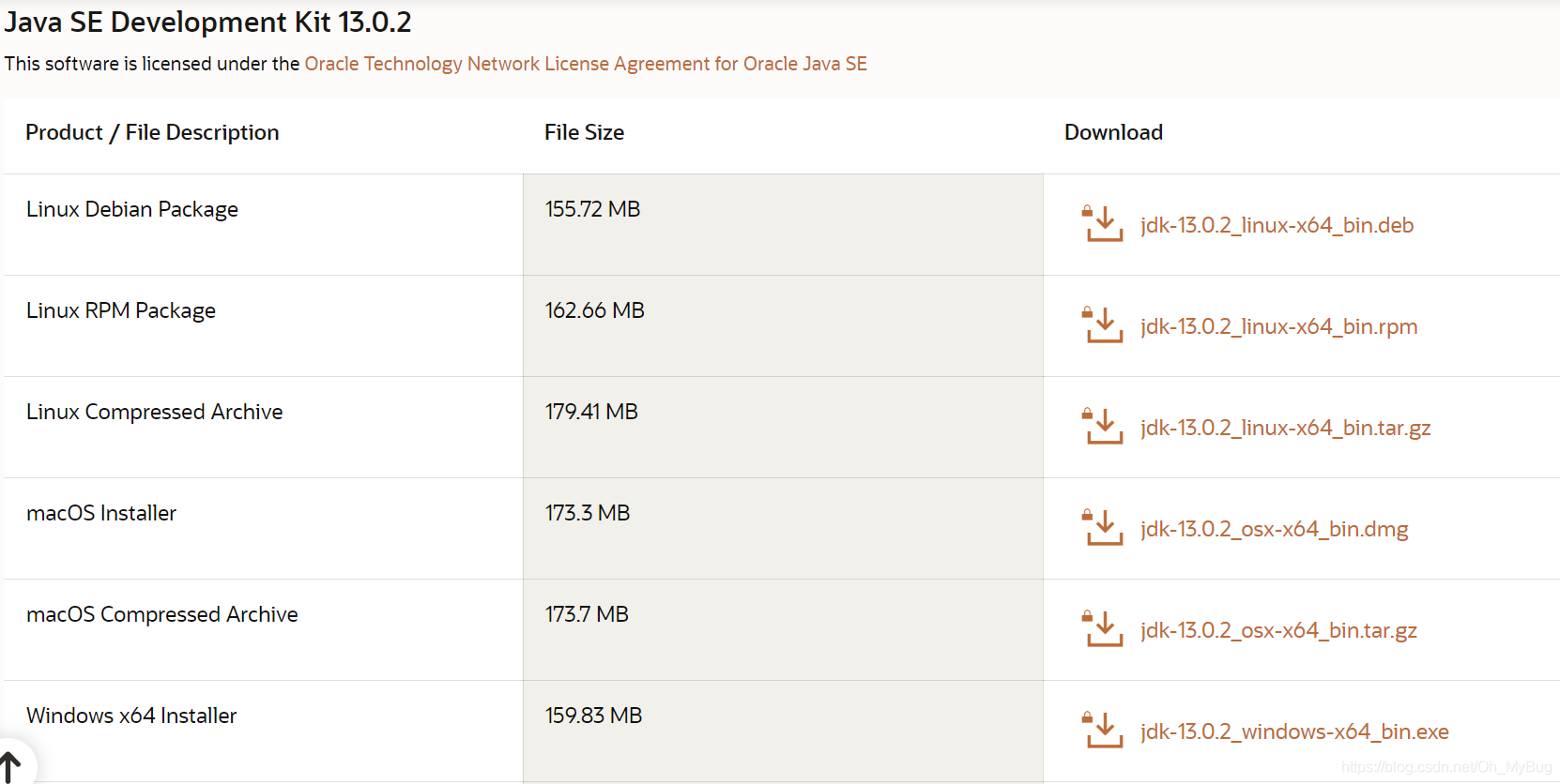 空降下载页面:https://www.oracle.com/java/technologies/javase-jdk13-downloads.html