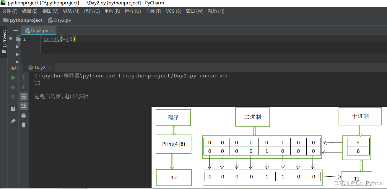 | or(或者) | True | True | True | 只要有一个运算数为True,结果就为True |