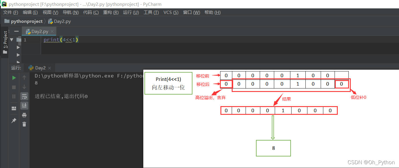 | 左移位 << | 高位溢出舍弃,低位补零 |