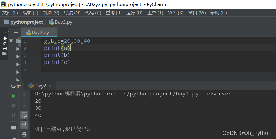 支持系列解包赋值(例:a,b,c=20,30,40)