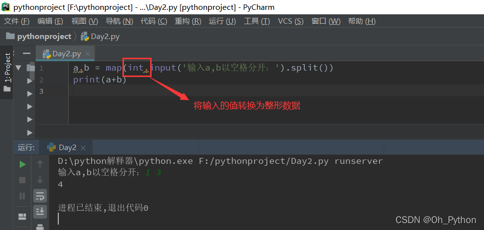 源头转换 ,输入值想要转换为整数或浮点数时,input()函数结果需要进行强制转换。