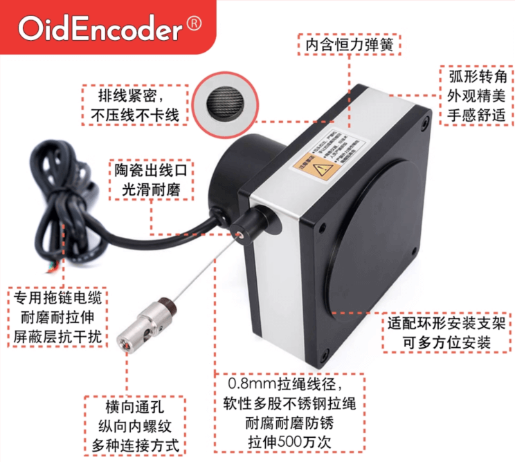 安装灵活:由于其“拉绳”的特性,它可以在空间受限或难以直接安装传感器的场合使用,只需将拉绳的末端固定在被测物体上即可。