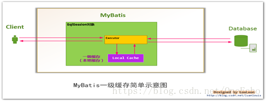 如下图所示,MyBatis会在一个SqlSession对象中创建一个本地缓存(local cache),对于每一次查询,都会尝试根据查询的条件去本地缓存中查找是否在缓存中,如果在缓存中,就直接从缓存中取出,然后返回给用户,从而减少资源浪费;否则,从数据库读取数据,将查询结果存入缓存并返回给用户,session关闭,缓存将被清空。
