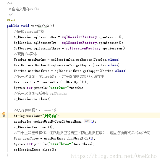第一步sqlSessionOne进行sql查询操作,将查询结果放入redis缓存中