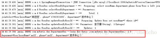可以看到同一个sqlSession两次查询只是发出了一条sql语句,第二次查询是从缓存中读取。