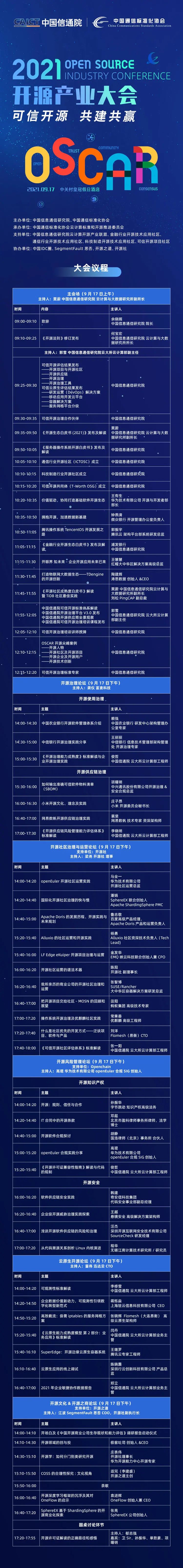 2021年9月,中国信息通信研究院和中国通信标准化协会联手举办'2021 Oscar开源产业大会',聚焦开源技术在中国的发展,关注企业治理、生态建设与标准制定,业界专家将深入讨论开源文化与商业实践,以及首个《操作系统开放生态白皮书》等成果发布。