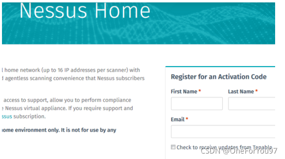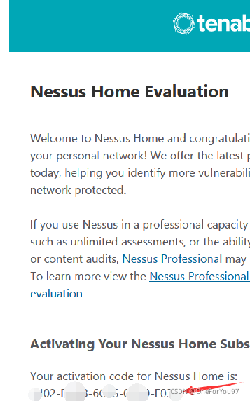 这个页面里面的activation code是通过链接:https://www.tenable.com/products/nessus-home 来获取的