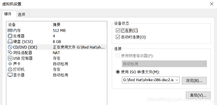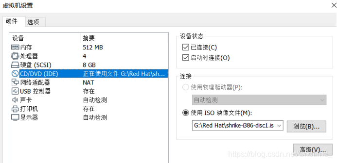 先设置连接第一个镜像文件(是作为光驱挂载到虚拟机