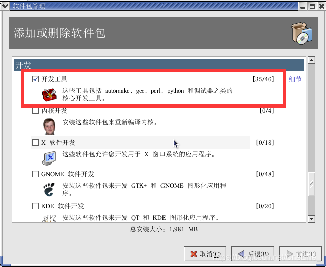 找到开发工具 并选中(如果有其他要用的包也可以顺便装233