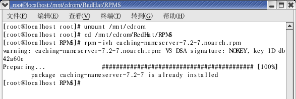(取消挂载是输入 umount /mnt/cdrom)
