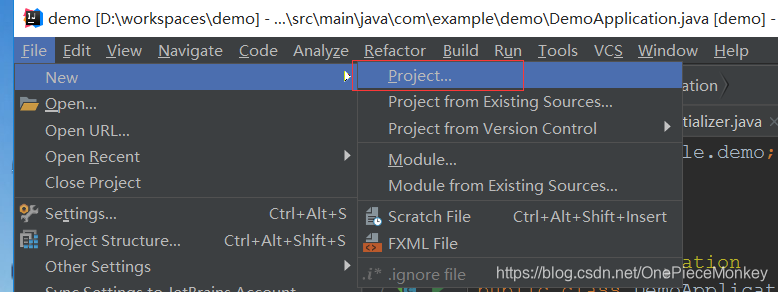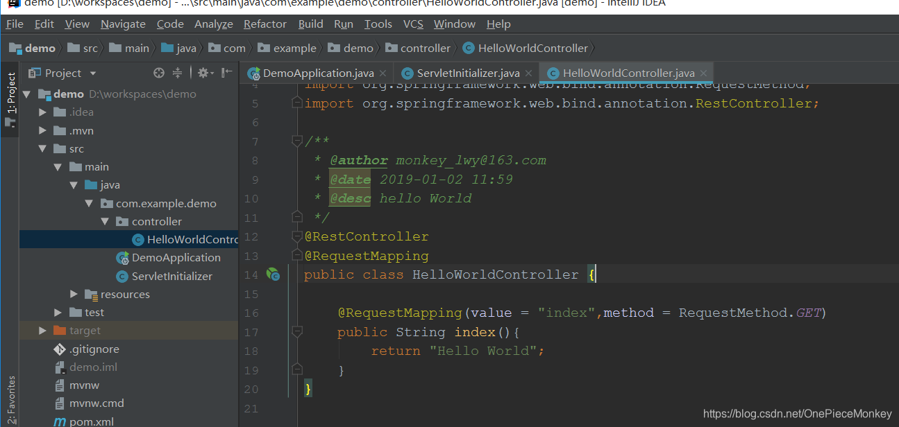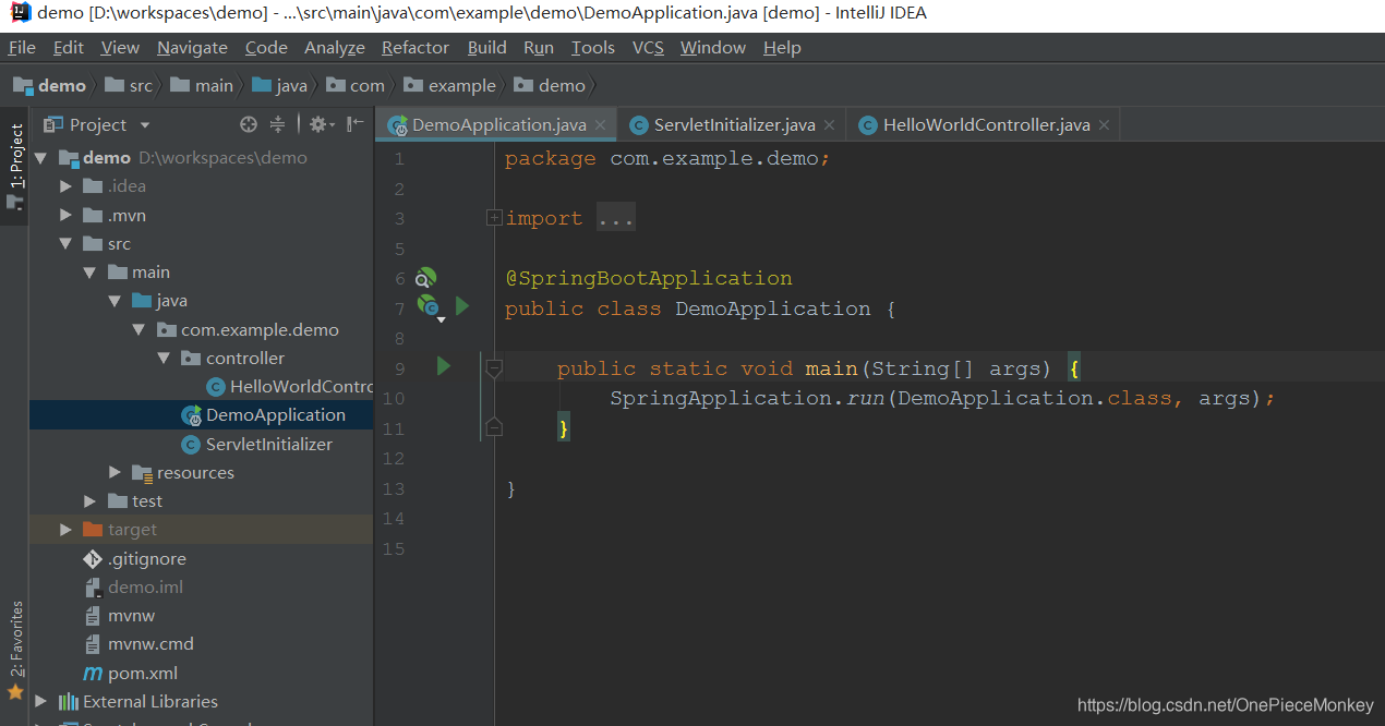 DemoApplication 该类是程序的入口类内有个main方法,可以直接通过run as运行项目