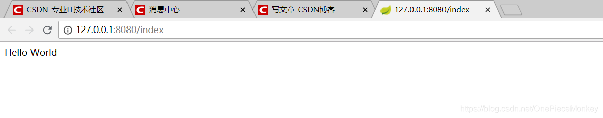 可以看到我配置了一个@RequestMapping注解来声明index()方法可以通过127.0.0.1:8080/index访问到,那么我们接下来重新启动项目