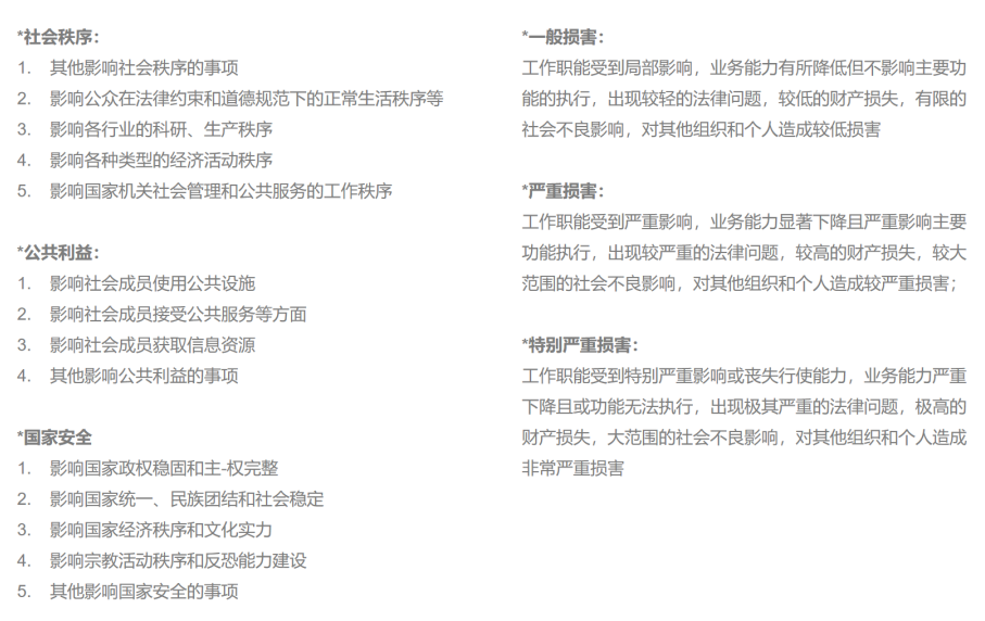 第二级 信息系统受到破坏后,会对公民、法人和其他组织的合法权益产生严重损害,或者对社会秩序和公共利益造成损害,但不损害国家安全