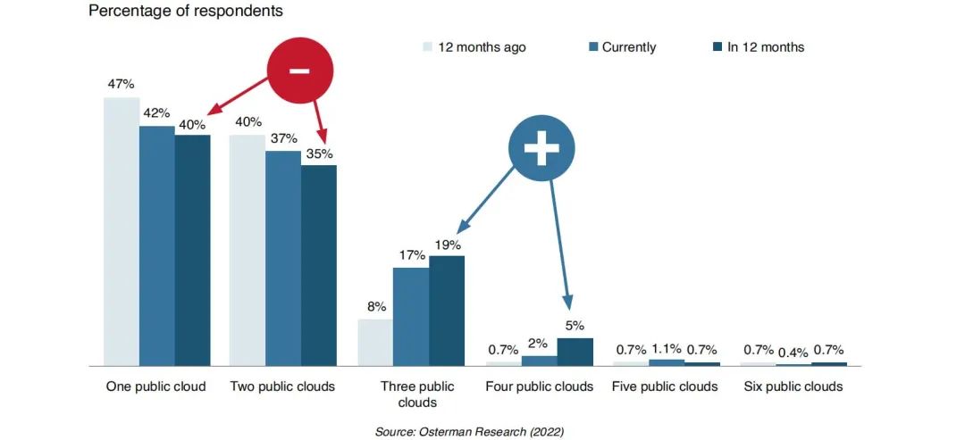 尝到云计算降本增效甜美果实的企业们逐渐不满足于单云部署。他们认为业务被单朵云锁定后,将失去后续合作的筹码,难以为自己争取更多利益。为了贯彻企业心中的“完美降本增效”,企业们开始将业务分散部署于多云或混合云环境中。