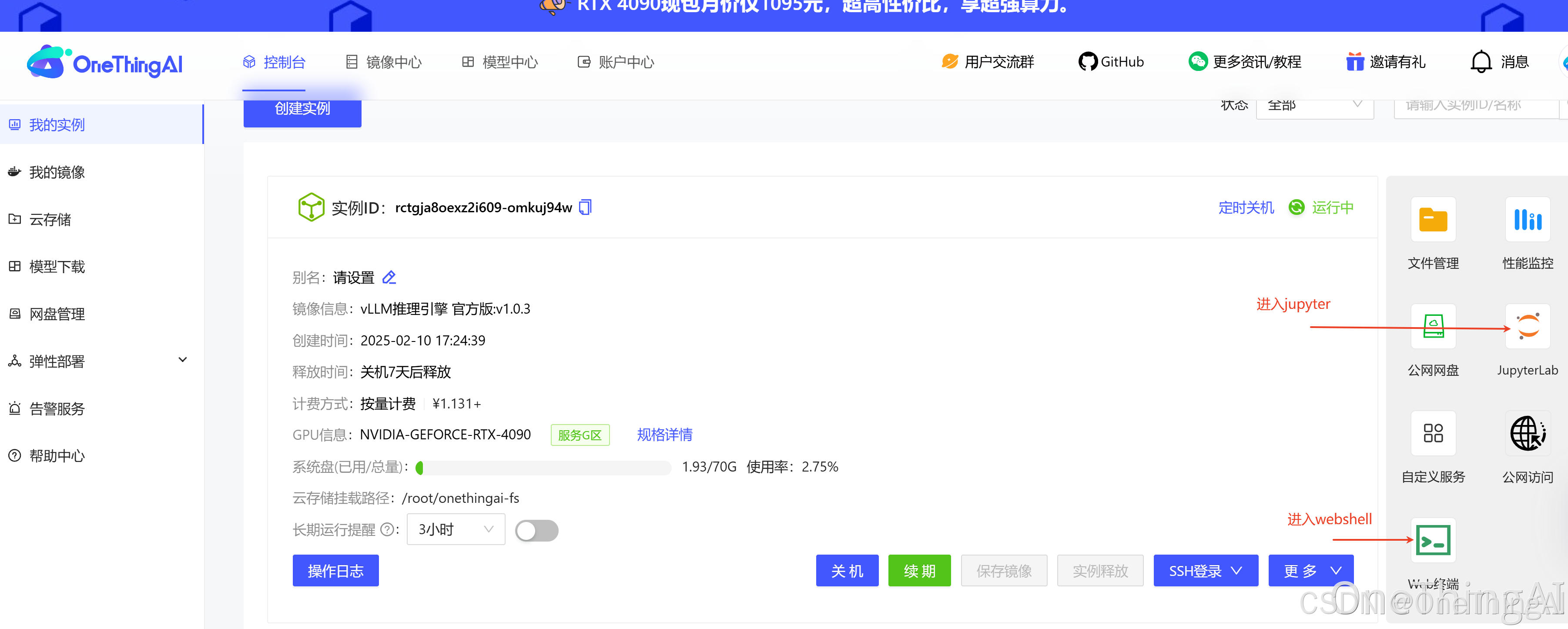 点击顶部导航栏中【镜像中心】官方镜像,点击更多镜像,选择LLM推理引擎官方版:V1,进行创建实例