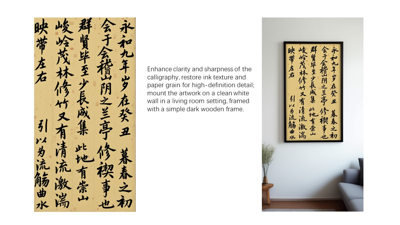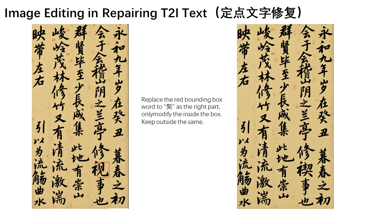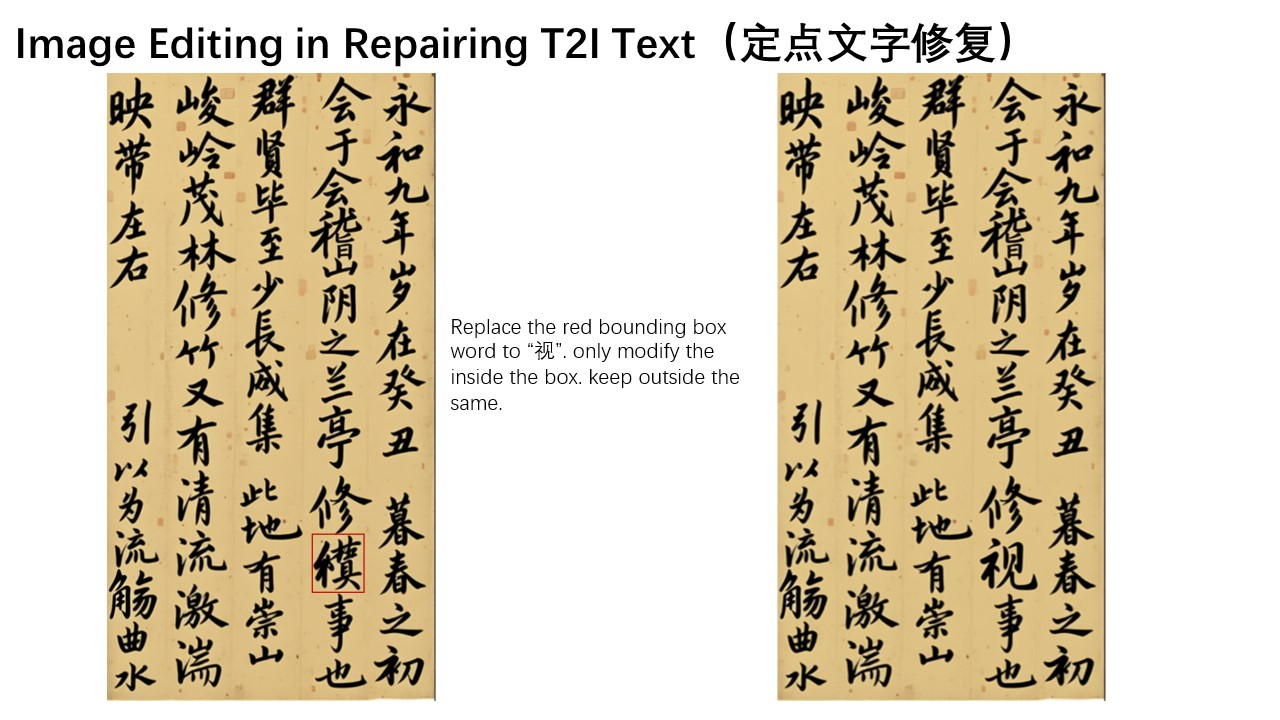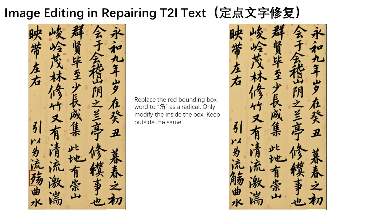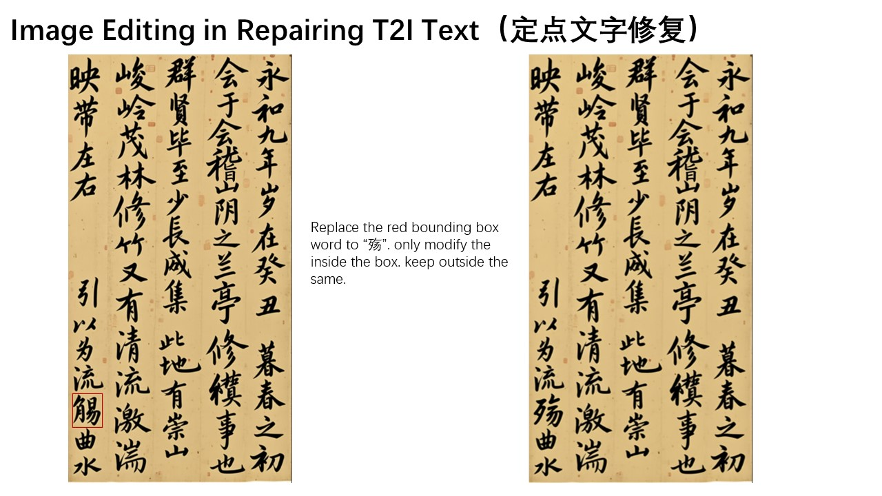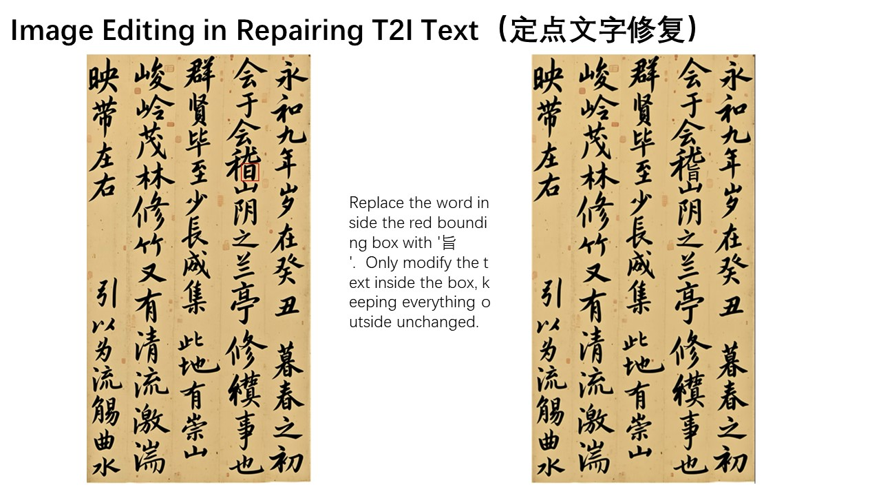 最后,成功获得了一版完全正确的《兰亭集序》书法作品!总之,我们希望通义万相 - 图像编辑能够进一步推动图像生成领域的发展,真正降低视觉内容创作的技术门槛,并激发出更多创新应用。