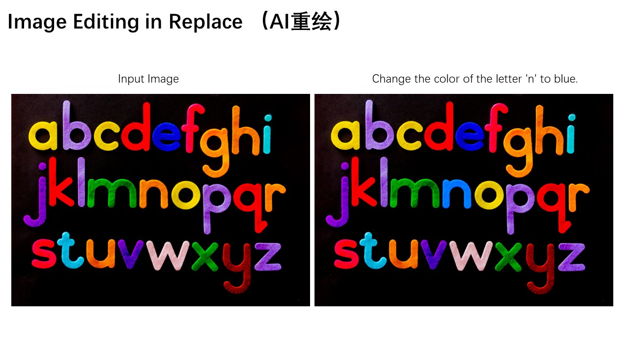 此外,图像中特定字母“n”的颜色可以更改为蓝色,从而实现对特定元素的精确编辑。